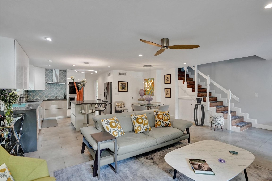 COMING SOON. Behind the gate, this home opens to a private tropical oasis rarely found in this area. A resort-style pool anchors the front courtyard, creating a true indoor-outdoor lifestyle. The main level offers open living space with an updated kitchen and full bath, ideal for everyday living and entertaining. A separate studio suite with private entrance, full kitchen, and bath provides excellent flexibility for guests, multigenerational living, or vacation rental use. Impact windows and doors throughout ensure safety and peace of mind. Upstairs features an expansive primary suite with spa-inspired bath, walk-through closet, and large balcony overlooking the pool, plus two additional bedrooms, one with a full ensuite bath. Coming Soon—no showings until go-live date.